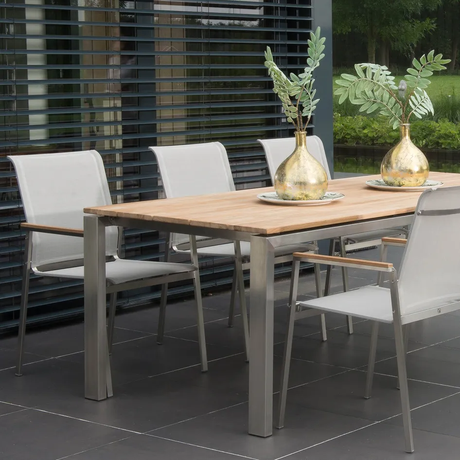 While many stainless steel furniture used to be left bare, we now often opt for powder coating stainless steel. This extends the lifespan, but above all, the shiny stainless steel look is less popular than before. However, we would like to continue to use the advantages of stainless steel, so we choose to give the stainless steel a color - just like with aluminum. This means that stainless steel is often indistinguishable from aluminum, but it gives us many more options in the design of garden furniture.